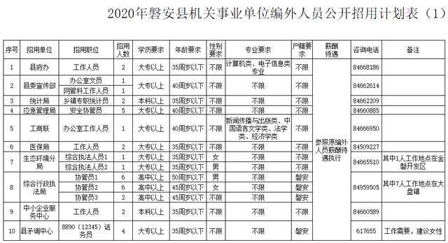 2020年磐安县机关事业单位编外人员