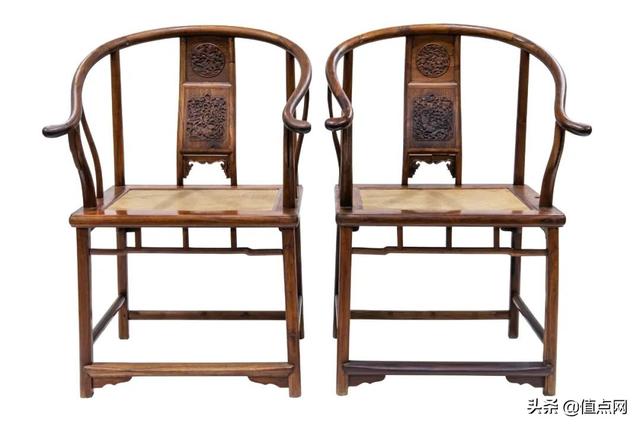 家具部分则由一对清中期黄花梨圈椅领衔。三弯式背板上部圆形开光内雕吉祥花卉纹饰,中部方形委角开光以浅浮雕装饰神兽及海水、灵芝纹。椅盘格角攒边框镶嵌席面,圆腿直足,正面设脚踏。装饰造型尽显清代家具的精致富丽。