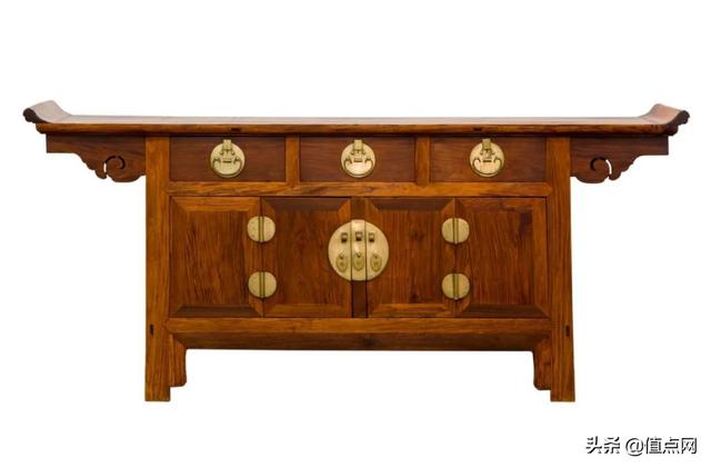 家具部分的另一件重点拍标的是一件晚清民国时期黄花梨三联闷柜橱。橱面由一整块黄花梨木板雕刻而成,两端翘起,与橱身相连牙板雕刻如意云纹饰,设三具抽屉,装白铜拉手。抽屉下为橱柜,两扇对开门装白铜锁鼻。橱面及柜门尽显黄花梨木纹之华美。