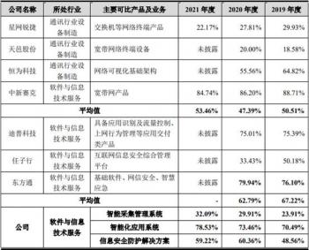 在智能化应用系统、信息安全防护解决方案毛利率方面,公司智能化应用系统、信息安全防护解决方案以“软件为主、硬件为辅”,同行业可比公司2019年-2020年的平均毛利率分别为67.22%以及62.79%。公司智能化应用系统的毛利率分别为70.49%、73.46%以及78.53%,信息安全防护解决方案毛利率分别为48.56%、60.36%以及59.22%,整体处于同行业可比公司毛利率区间范围内。
