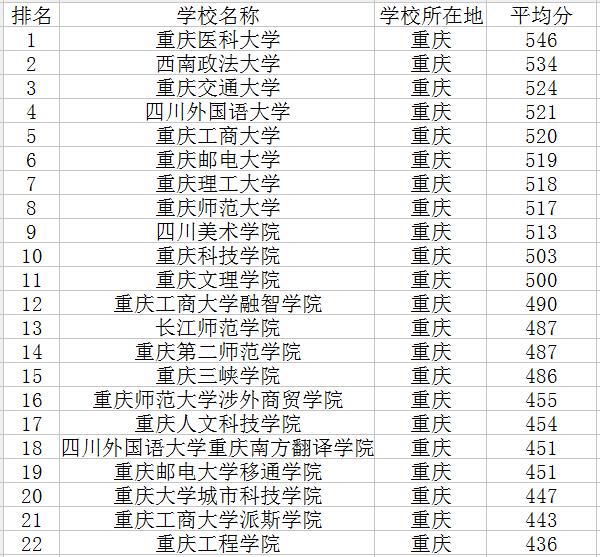 重庆三本大学排名及分数线