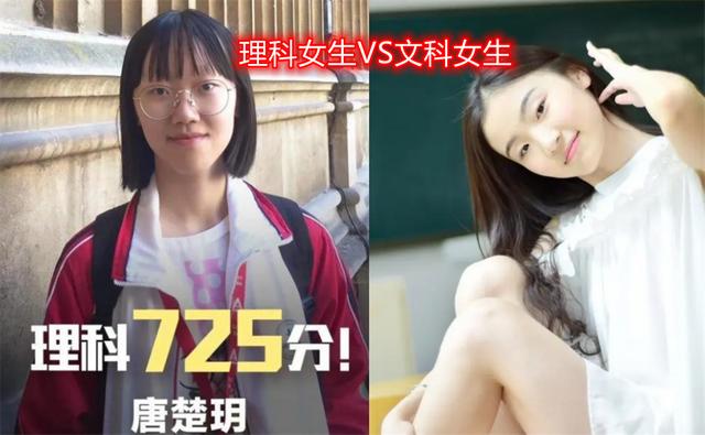 如下图所示,左边理科女生带着眼镜,梳着干净利落的短发,穿着校服,给人一种学霸的感觉,而右边的文科女生,则是画着精致的妆容,穿着漂亮时尚的小裙子,乍一看就是美女。