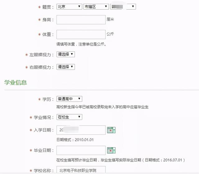 填写个人基本信息。学历填写“大专”。学业信息填写注意事项:(1)在校非毕业班学生,在“学业情况”中选择“在校生”;(2)在校毕业班学生,在“学业情况”中选择“应届毕业生”;(3)今年9月考入大学的新生,在“学业情况”中选择“在校生”。