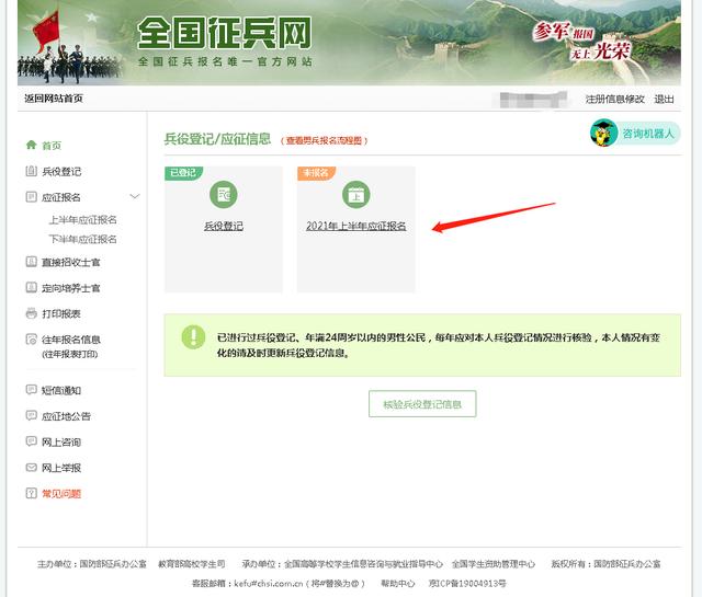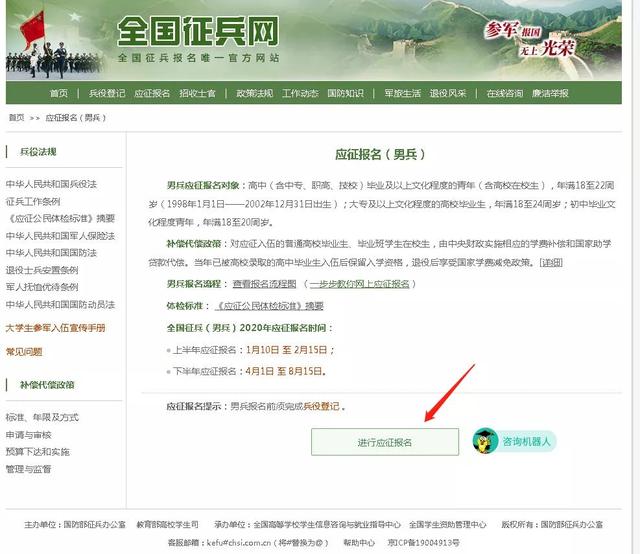打开全国征兵网首页,不妨先了解一下征兵政策和报名条件(例如:报名年龄、身体条件规定等)。来跟着我,一步一步来!