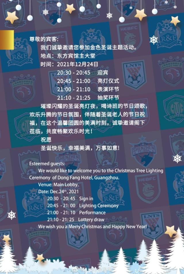 圣诞节晚会(圣诞节晚会英文) 直播吧12月23日讯 据记者汤幸报道,明晚中超公司为各队外援准备了圣诞晚会。 明晚将迎来一年一度的平安夜,目前随各支中超球队在赛区参赛的外援们,此刻并没有办法陪伴在家人身边。因此,中超公司也将在明晚准备圣诞晚会,以缓解外援们的思乡之心,并为大家送上圣诞的祝福。 (南陵哭哭生)