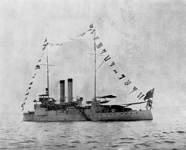 “是时时针已指八时半 满舰饰以花綵 桅间悬万国旗徽 舰之头尾及桅头均高揭黄龙旗五十面 四处覔我国之来观者而使分持之 四望则除我四人外不见一中国人形影 惟欧人日本人之来宾 男女学生到者颇众 心有所感而不觉神为之徂 ”