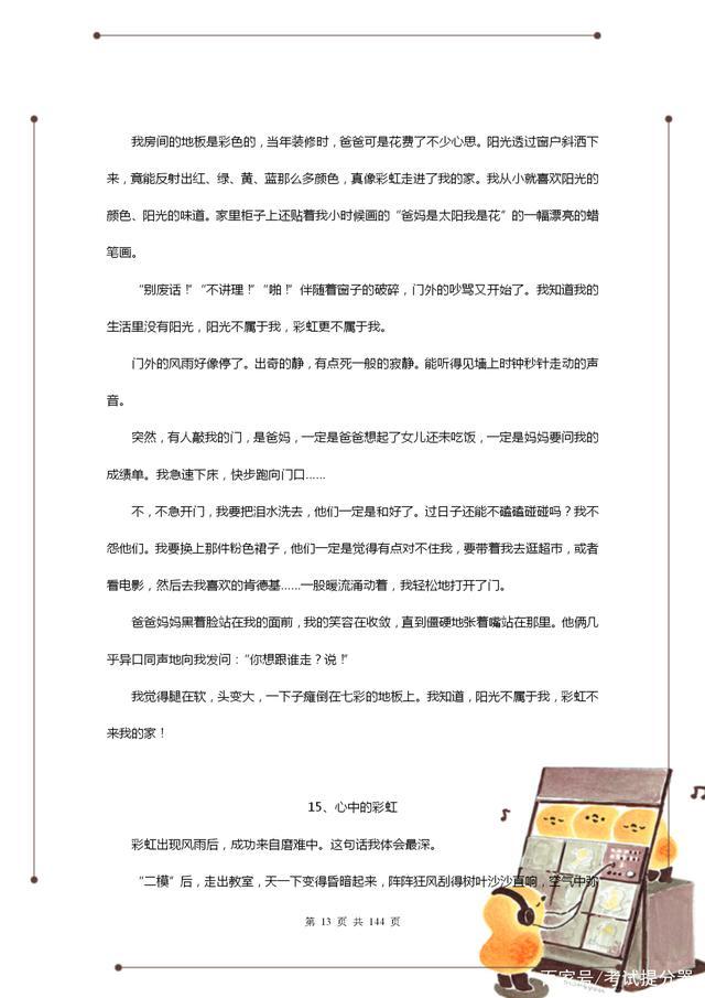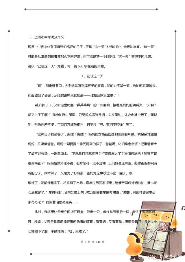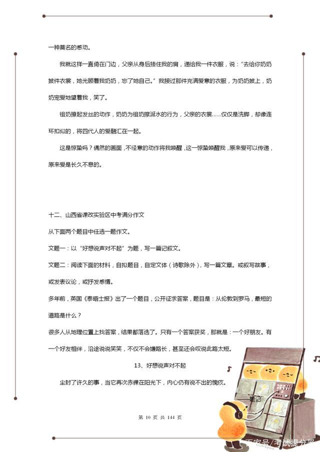 所以接下来,老师特意整理了一份近几年的中考满分作文精选,建议初中生人手一份,趁早拿去背,考试总能用到!老教师整理:近几年中考“满分”作文(100篇),建议初中生打印!