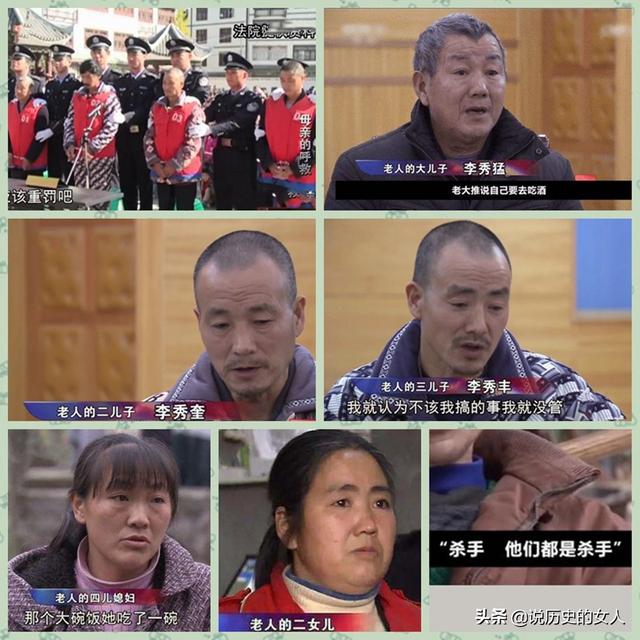 在审判会上,老大因被判了两年,比仨弟弟刑期长,感觉吃亏了,于是他老泪纵横地把这件事说了出来,他说自己曾多管了母亲一个月。其实这就是元旦那天他不愿意从老四那里接管母亲的原因。