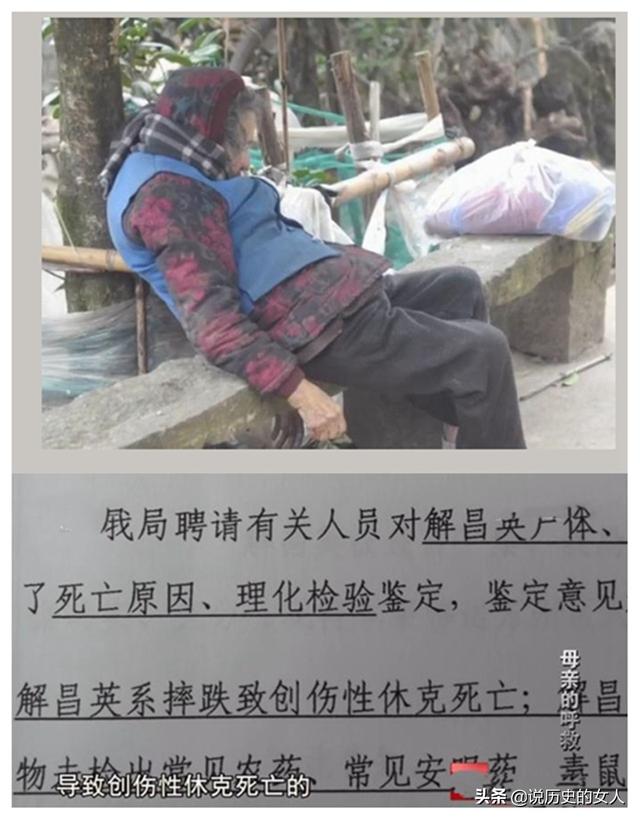 这位老太太叫解昌英,生活在重庆市万州区的一个小山村里。解昌英出生于1929年,在战乱和极度贫穷中长大。在其一生中,度过了多次大饥荒,都熬了过来,但她却在2014年元旦的次日,即2014年1月2日,在高龄85岁时冻死了!而且是冻死在自己儿子的门口!真的是不可思议。