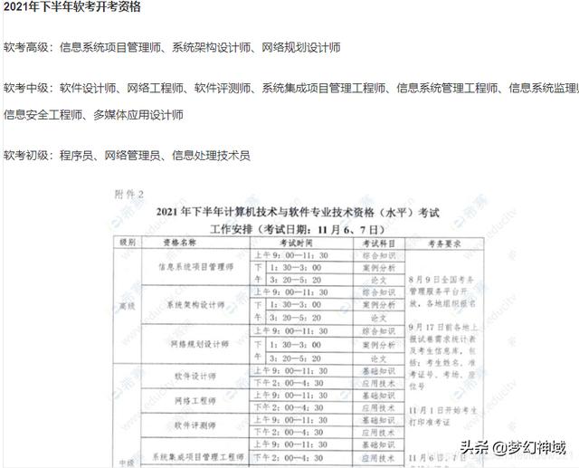 除信息系统项目管理师一年考两次外,其他科目都是一年考一次。其中系统规划与管理师是2017年新开设软考高级科目,在当年11月首次举行考试,并于2018年调整至上半年(5月份)考试。