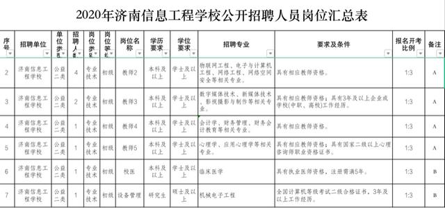 2020年济南信息工程学校公开招聘人员岗位汇总表