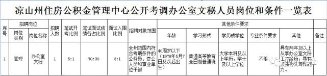 凉山州住房公积金管理中心公开考调工作人员1名