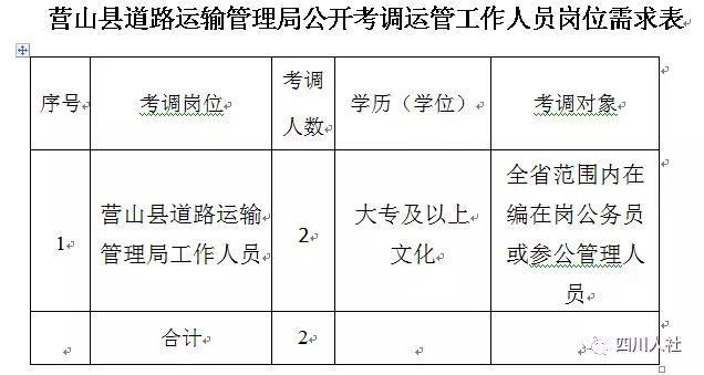 营山县道路运输管理局公开考调运管工作人员2名