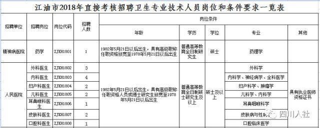 江油市直接考核招聘卫生专业技术人员99名