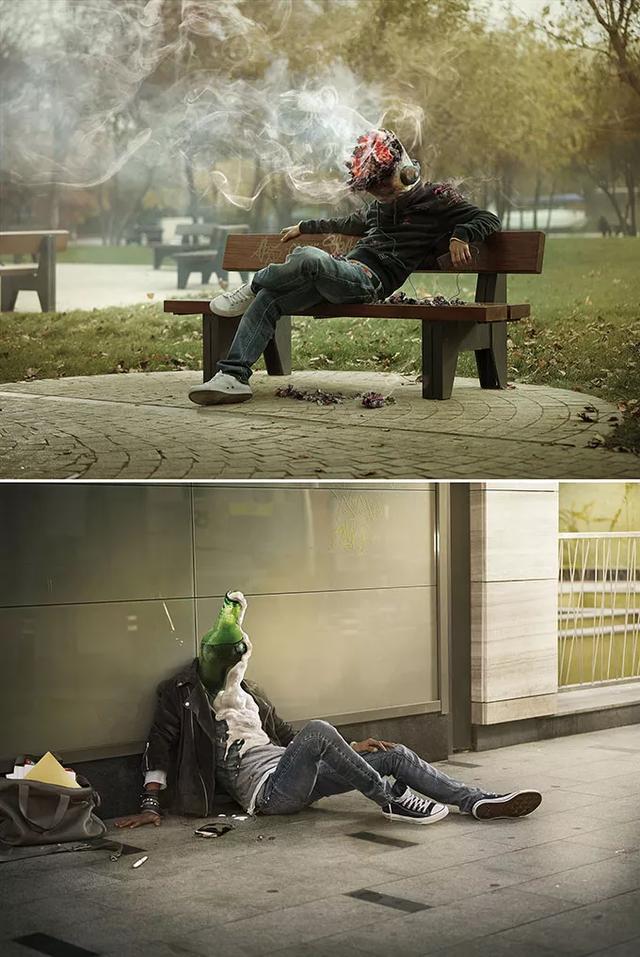 通过将图形之间的反差突出地并列在观众面前,可以使观众进行对比,在心里造成强烈的冲击。