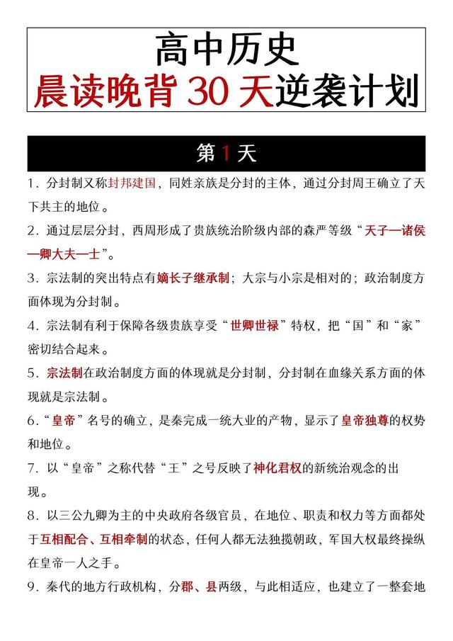 高中历史30天逆袭计划晨读+晚背,搞定高考!