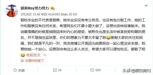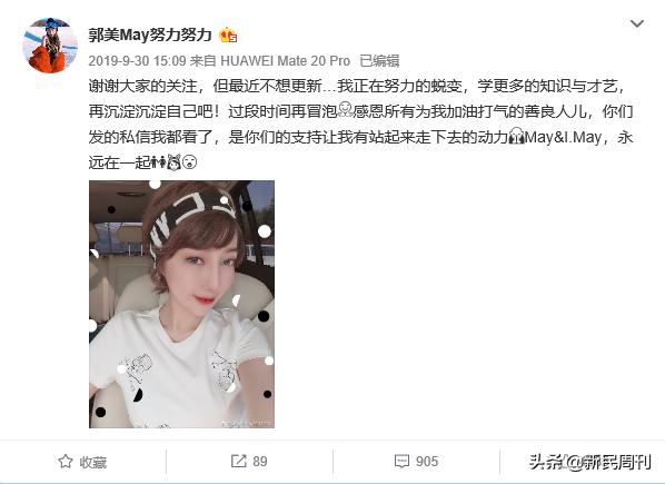 她很快发现“黑红”也是红,于是在新浪微博换了一个新账号“郭美May努力努力”,准备东山再起。