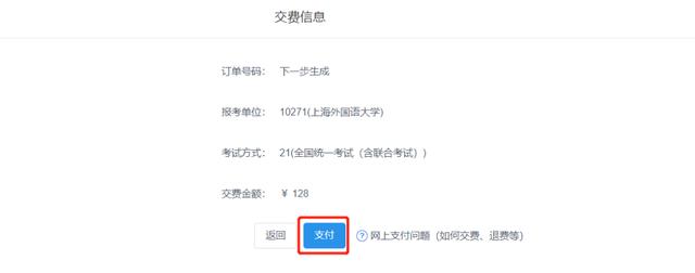 选择上外考点的考生均须在网上报名期间完成缴费,网报期间未缴费将无法进行后续确认和考试。