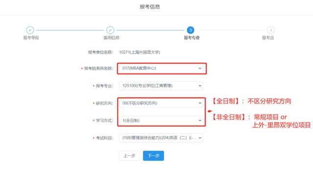 报考【非全日制】的同学,【研究方向】可根据个人需求选择01(常规项目)或02(上外-里昂双学位项目)。