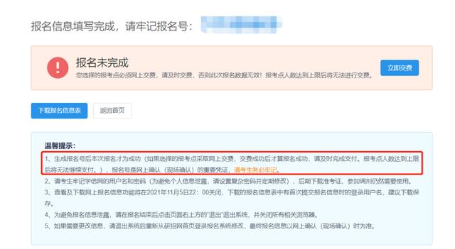 报名号是现场(网上)确认的重要凭证,请考生务必牢记。请多次多地备份报名信息表,以方便现场(网上)确认。