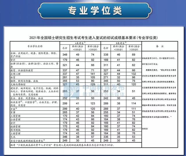 今日下午,微言教育正式公布2021年研考国家线,2021年全国硕士研究生复试录取工作全面展开。具体分数线如下: