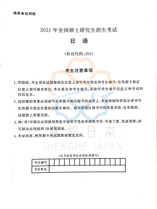2021年真题:最新!2021考研日语203真题发布