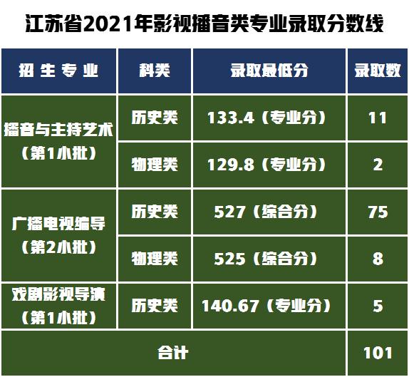 2021年影视传媒类共录取149人,其中江苏省内101人,省外48人。