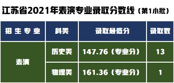 江苏省内舞蹈表演考生专业成绩合格,文化分达江苏省普通类本科相应批次省控线50%, 按照校考专业成绩排名择优录取最低录取至70.26分。