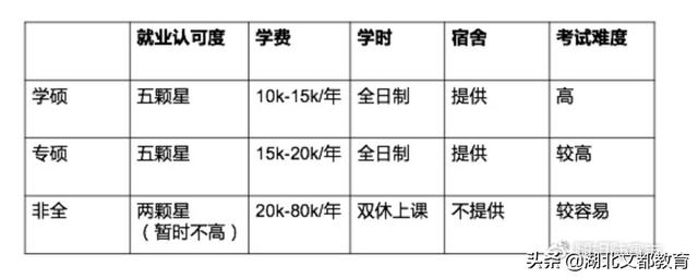 还有一种是非全日制研究生(或者叫在职),这种学费会贵一些,周末上课,不提供住宿。在学位证和毕业证上会标注培养方式为非全日制,没有报到证。目前虽然并入全国统考,但就业形势相对没有那么明朗,这主要还是由于在职研究生考试刚刚并入统考,虽然门槛难度变大,但由于长期社会认可度不太高,短期内就业前景不明。