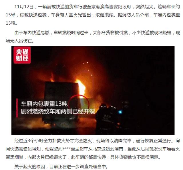 每年必翻车一批快递,今年也没出乎意料,听说哪哪地区的快递又起火了