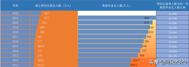 当年研究生报考人数与上一年大学毕业生人数比较如下: