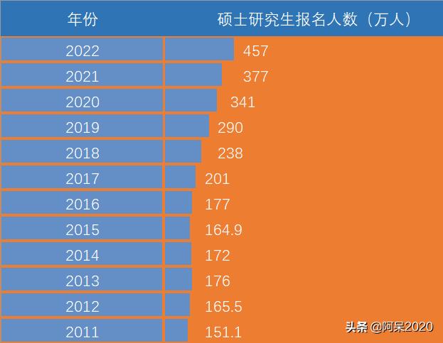 2022年的研究生报考人数达457万人,此届学子们的考研竞争异常激烈与残酷。以下为近十年来的研究生报考人数统计。