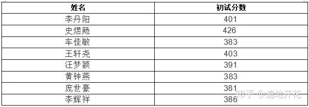 13人进入复试(最低分数为382)6人最终录取(最低分数为384)2018录取: