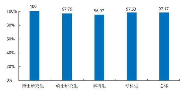 2018 届毕业生就业率为 97.17%,其中博士研究生、硕士研究生、本科生、专科生的就业率分别为100.00%、97.79%、96.97%、97.63%。