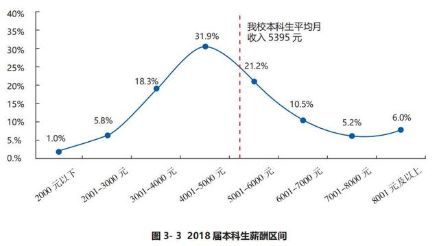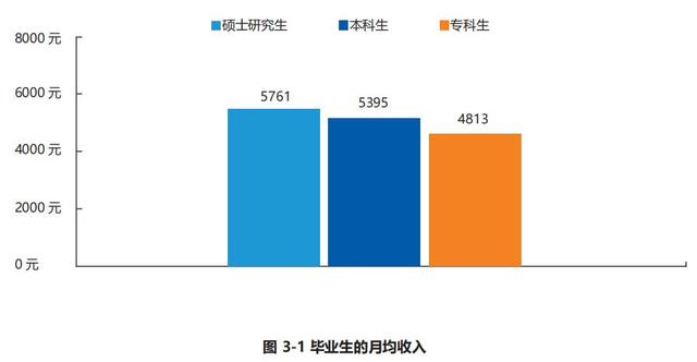 我校 2018 届硕士研究生、本科生、专科生的月均收入分别为 5761 元、5395 元、4813 元。
