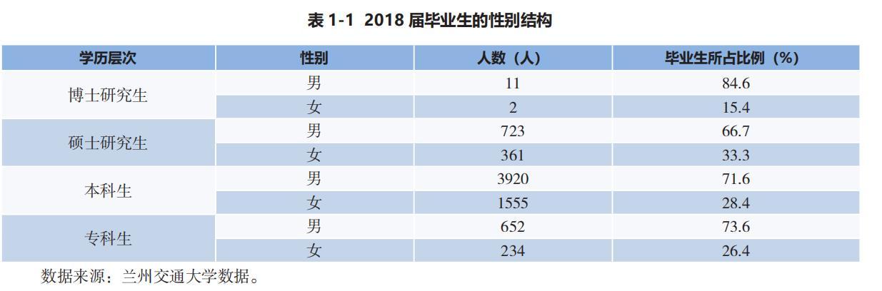 兰州交通大学 2018 届毕业生总人数为 7458 人,其中博士研究生 13 人,硕士研究生 1084 人,本科生5475 人,专科生 886 人。
