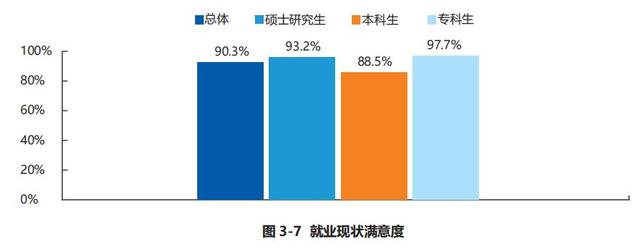 2018 届毕业生总体就业满意度为 90.3%,其中硕士研究生的就业满意度为 93.2%,本科生的就业满意度为 88.5%,专科生的就业满意度为 97.7%。