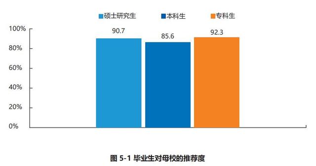 2018 届硕士研究生、本科生、专科生对母校的总体推荐度分别为 90.7%、85.6%、92.3%。