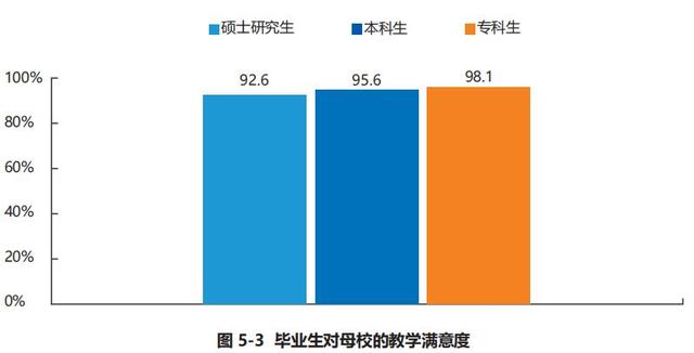 2018 届硕士研究生、本科生、专科生对母校教学满意度分别为 92.6%、95.6%、98.1%。