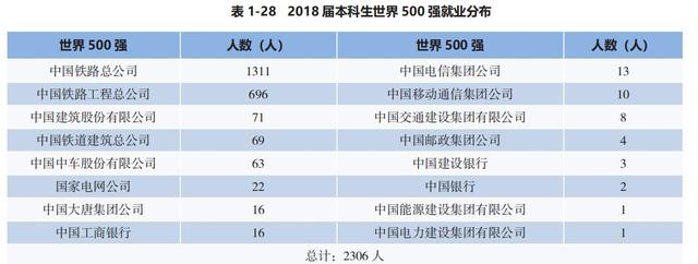 2018 届毕业生中,共有 3245 人进入世界 500 强。本科生共有 2306 人在世界 500 强企业就业。