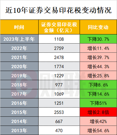 一图看懂近10年证券交易印花税变动情况