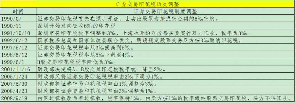 A股印花税历次调整及影响: