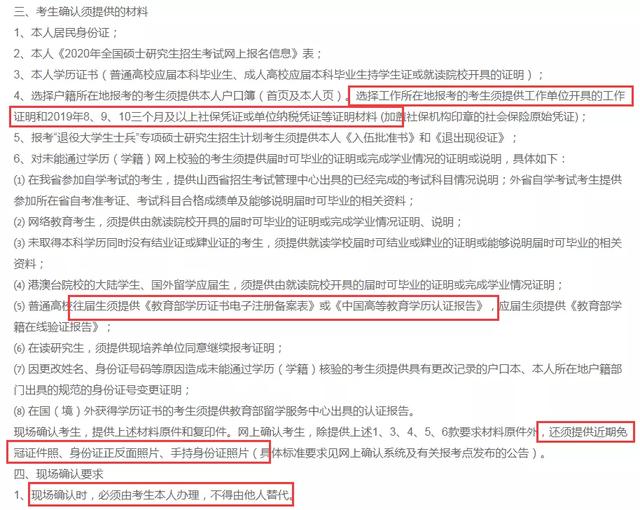 以北京理工大学为例,考点现场确认时往届生须提供在京户籍证明,户籍非京籍考生须提供工作单位及档案均在京的书面证明,应届生须提供京籍高校学生证,必须选择我校报考点的考生不需提供上述材料。提供虚假证明信息的,一经查实,将取消考试、录取资格。