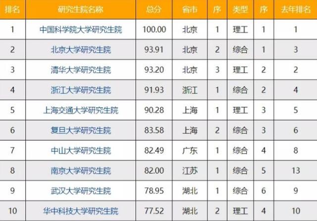 排名第二位和第三位的自然是北京大学研究生院和清华大学研究生院。这样的结果基本没有什么争议性,毕竟作为中国两大顶级名校,各种优质教育资源汇聚于此,在研究方面自然更胜一筹。