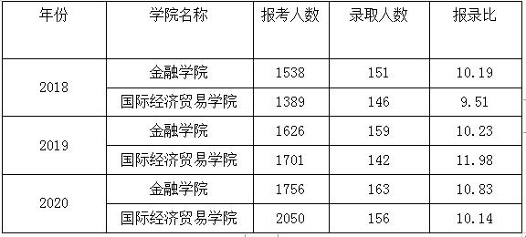 贸大两个学院招收金融专硕,历年招生人数和录取人数为: