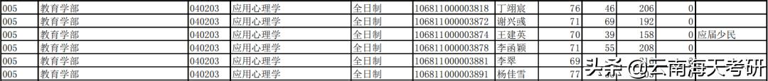 2020年复试线:040201基础心理学是国家线321分;040203应用心理学是330分比国家线高9分;040202 发展与教育心理学是325分,比国家线高4分。
