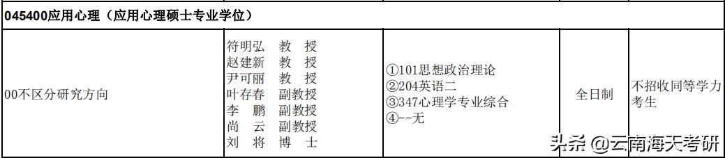 加试科目:跨学科、调剂、破格录取考生加试心理学综合(一)。