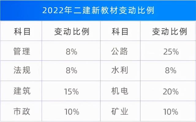 2022年版二级建造师教材变动占比