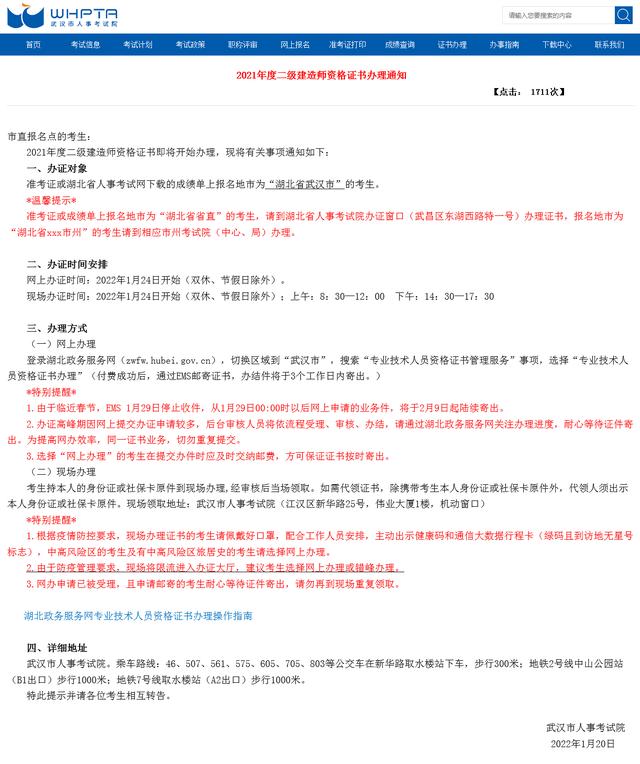 湖北二级建造师领证(湖北二级建造师领证时间) 武汉人事考试院发布了2021年度二级建造师资格证书办理通知,准考证或成绩单上报名地市为“湖北省省直”的考生,请到湖北省人事考试院办证窗口(武昌区东湖西路特一号)办理证书,报名地市为“湖北省xxx市州”的考生请到相应市州考试院(中心、局)办理。大立教育小编整理相关内容如下: