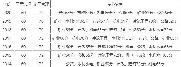 一、安徽二级建造师历年及格分数线
